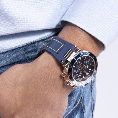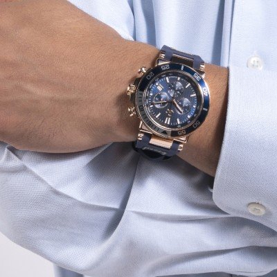 This GC watch has a case made of Steel silver with a diameter of 44 mm and is fitted with a rubber strap. Inside the case lies a Ronda movement and the watch features a Sapphire coated mineral crystal.
