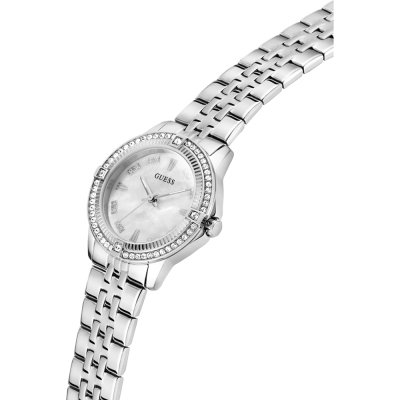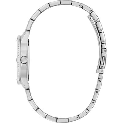 This Guess watch has a case made of Steel silver with a diameter of 32 mm and is fitted with a Steel silver strap. Inside the case lies a Seiko movement and the watch features a Mineral crystal.