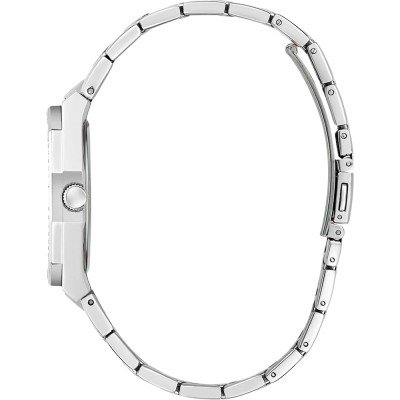 This Guess watch has a case made of Steel silver with a diameter of 36 mm and is fitted with a Steel silver strap. Inside the case lies a Seiko Instruments Inc. movement and the watch features a Mineral crystal.