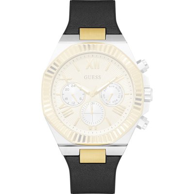 This Guess watch strap is made of silicone and is attached to the watch by means of steel pins. The band has a width of 24 mm and is closed by means of a buckle. The strap has no straight mount which means that this strap is only suitable for the watches listed below.