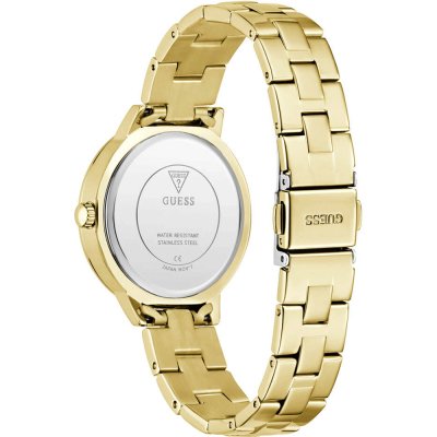 This Guess watch has a case made of Steel silver with a diameter of 34 mm and is fitted with a Steel silver strap. Inside the case lies a Seiko movement and the watch features a Mineral crystal.