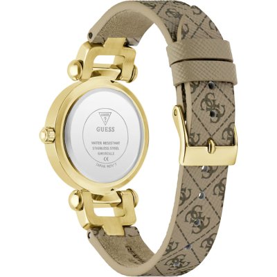 This Guess watch has a case made of Steel silver with a diameter of 30 mm and is fitted with a leather strap. Inside the case lies a Seiko movement and the watch features a Mineral crystal.