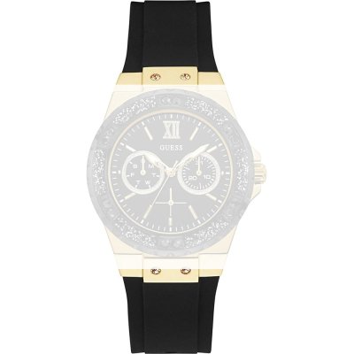This Guess watch strap is made of silicone and is attached to the watch by means of push pins. The band has a width of 23 mm and is closed by means of a buckle. The strap has no straight mount which means that this strap is only suitable for the watches listed below.