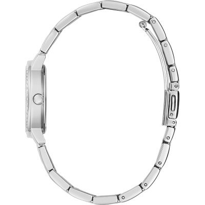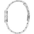 This Guess watch has a case made of Steel silver with a diameter of 28 mm and is fitted with a Metal strap. Inside the case lies a movement and the watch features a Mineral crystal.