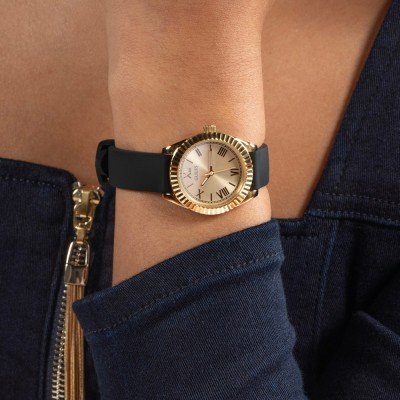 This Guess watch has a case made of Steel silver with a diameter of 30 mm and is fitted with a rubber strap. Inside the case lies a Seiko movement and the watch features a Mineral crystal.