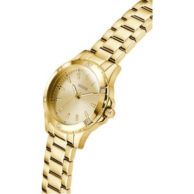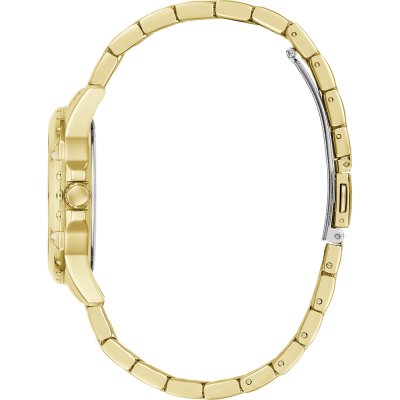 This Guess watch has a case made of Steel silver with a diameter of 35 mm and is fitted with a Steel silver strap. Inside the case lies a Seiko movement and the watch features a Mineral crystal.