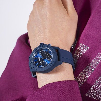 This Guess watch has a case made of Resin with a diameter of 38 mm and is fitted with a rubber strap.