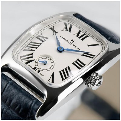 This Hamilton watch has a case made of Steel silver with a diameter of 23.5 mm and is fitted with a leather strap. Inside the case lies a ETA movement and the watch features a Sapphire crystal.