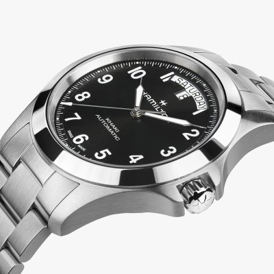This Hamilton watch has a case made of Steel silver with a diameter of 40 mm and is fitted with a Steel silver strap. Inside the case lies a ETA movement and the watch features a Single anti-reflective sapphire crystal.