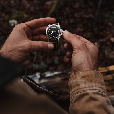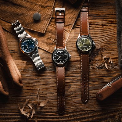 This Hamilton watch has a case made of Steel silver with a diameter of 40 mm and is fitted with a leather strap. Inside the case lies a ETA movement and the watch features a Single anti-reflective sapphire crystal.