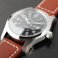 This Hamilton watch has a case made of Steel silver with a diameter of 42 mm and is fitted with a leather strap. Inside the case lies a ETA movement and the watch features a Sapphire crystal.