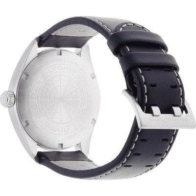 This Hamilton watch has a case made of Steel silver with a diameter of 40 mm and is fitted with a leather strap. Inside the case lies a ETA movement and the watch features a Sapphire crystal.