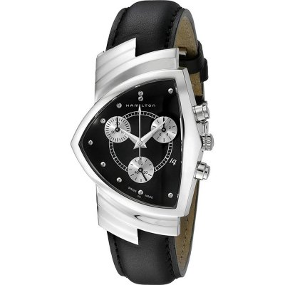 This Hamilton watch has a case made of Steel silver with a diameter of 32.3 mm and is fitted with a leather strap. Inside the case lies a ETA movement and the watch features a Sapphire crystal.