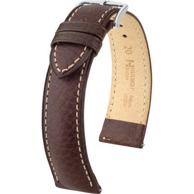 The semi-aniline buffalo leather used to make this strap is only slightly (vegetable)tanned and shows its natural grain and patina. Hirsch’ proprietary Softglove lining leather creates a comfortable fit.