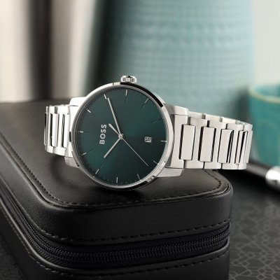 This Hugo Boss watch has a case made of Steel silver with a diameter of 41 mm and is fitted with a Steel silver strap. Inside the case lies a Seiko Instruments Inc. movement and the watch features a Mineral crystal.
