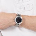 This Hugo Boss watch has a case made of Steel silver with a diameter of 42 mm and is fitted with a Steel silver strap. Inside the case lies a Seiko movement and the watch features a Mineral crystal.