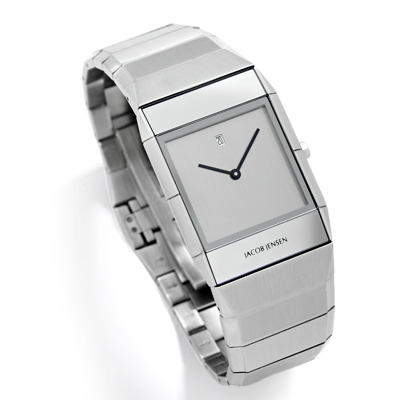 This Jacob Jensen watch has a case made of Steel silver with a diameter of 30 mm and is fitted with a Steel silver strap. Inside the case lies a ISA movement and the watch features a Sapphire crystal.