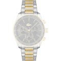 This Lacoste watch strap is made of stainless steel and is attached to the watch by means of push pins. The band has a width of 21 mm and is closed by means of a deployment clasp with push buttons. The strap has no straight mount which means that this strap is only suitable for the watches listed below.