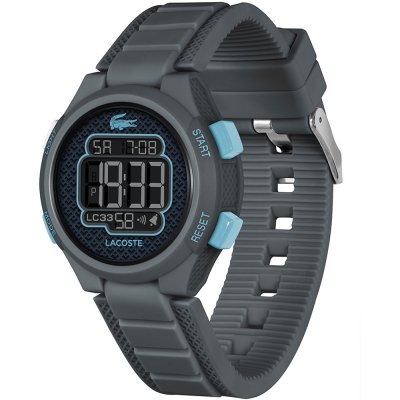 This Lacoste watch has a case made of Resin with a diameter of 34 mm and is fitted with a rubber strap.