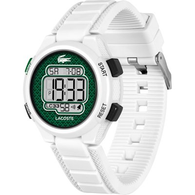 This Lacoste watch has a case made of Resin with a diameter of 34 mm and is fitted with a rubber strap.