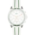 This Lacoste watch strap is made of silicone and is attached to the watch by means of push pins. The band has a width of 22 mm and is closed by means of a buckle. The strap has a straight mount which means that this strap is suitable for all Lacoste watches with a straight mount.