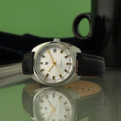 This LIP watch has a case made of Steel silver with a diameter of 35 mm and is fitted with a leather strap. Inside the case lies a Miyota movement and the watch features a Single anti-reflective sapphire crystal.
