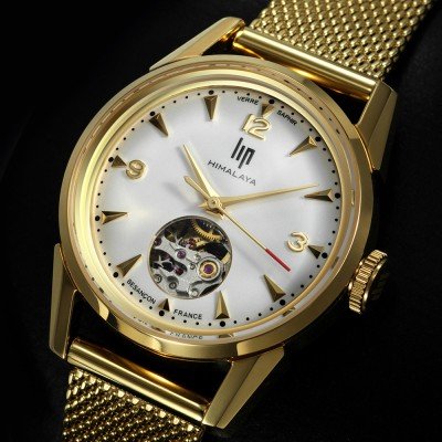 The LIP Himalaya watch is the first ever watch to to be worn at an altitude of over 8.000 m. The watch was worn by French mountaineers Maurice Herzog and Louis Lachenal reached the summit of Annapurna in 1950. Five years later, wearing the same watch, Lionel Terray and Jean Couzy set a new record, making the ascent to the 5th highest peak in the world at an altitude of 8,485 m. The current Himalaya watches are based on the 1950 design and available with different complications and in different styles, such as chronograph, automatic with open heart dial and quartz.