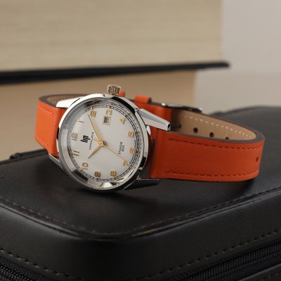 This LIP watch has a case made of Steel silver with a diameter of 29 mm and is fitted with a leather strap. Inside the case lies a Ronda movement and the watch features a K1 Mineral crystal.