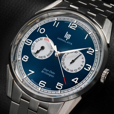 The LIP Himalaya watch is the first ever watch to to be worn at an altitude of over 8.000 m. The watch was worn by French mountaineers Maurice Herzog and Louis Lachenal reached the summit of Annapurna in 1950. Five years later, wearing the same watch, Lionel Terray and Jean Couzy set a new record, making the ascent to the 5th highest peak in the world at an altitude of 8,485 m. The current Himalaya watches are based on the 1950 design and available with different complications and in different styles, such as chronograph, automatic with open heart dial and quartz.