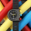 The Mach 2000 watch was designed for LIP by French industrial designer Roger Tallon. A prolific artist, Tallon is best known for his design of the French high speed train TGV. In 1975 he brought his knowledge of aeronautical materials to LIP and created this now iconic watch. The Mach 2000 design keeps all the particulars that make a watch a watch, but its asymmetrical shape and atypical design combined with three primary colours breaks with the traditional-watch concept, making the Mach 2000 a truly singular and much sought after watch.