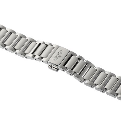 This Longines watch strap is made of stainless steel and is attached to the watch by means of push pins. The band has a width of 17 mm and is closed by means of a butterfly clasp with push buttons. The strap has no straight mount which means that this strap is only suitable for the watches listed below.