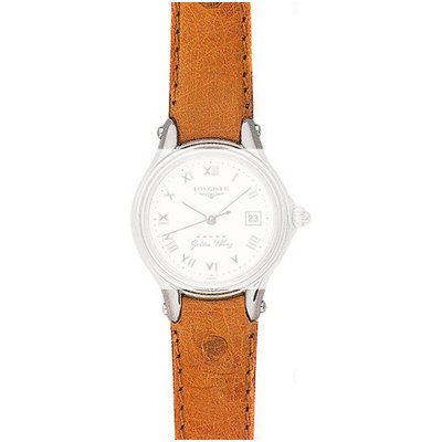 This Longines watch strap is made of leather and is attached to the watch by means of push pins. The band has a width of 14 mm. The strap has no straight mount which means that this strap is only suitable for the watches listed below.
