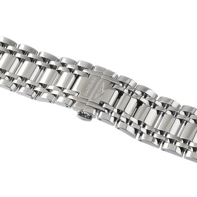 This Longines watch strap is made of stainless steel and is attached to the watch by means of push pins. The band has a width of 21 mm and is closed by means of a butterfly clasp with push buttons. The strap has no straight mount which means that this strap is only suitable for the watches listed below.