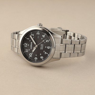 This Lorus watch has a case made of Steel silver with a diameter of 40 mm and is fitted with a Steel silver strap. Inside the case lies a Seiko movement and the watch features a Hardlex crystal crystal.