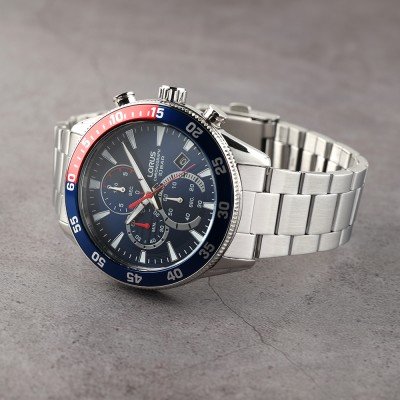 This Lorus watch has a case made of Steel silver with a diameter of 45 mm and is fitted with a Steel silver strap. Inside the case lies a Seiko Instruments Inc. movement and the watch features a Hardlex crystal crystal.
