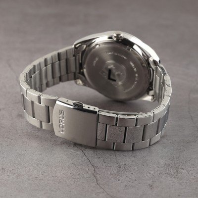 This Lorus watch has a case made of Steel silver with a diameter of 42.5 mm and is fitted with a Steel silver strap. Inside the case lies a Seiko movement and the watch features a Hardlex crystal crystal.