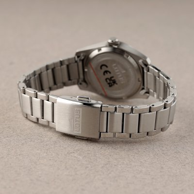 This Lotus watch has a case made of Steel silver with a diameter of 32 mm and is fitted with a Steel silver strap. Inside the case lies a Miyota movement and the watch features a Mineral crystal.