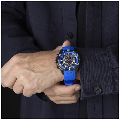 This Lotus watch has a case made of Steel silver with a diameter of 44 mm and is fitted with a rubber strap. Inside the case lies a Miyota movement and the watch features a Mineral crystal.