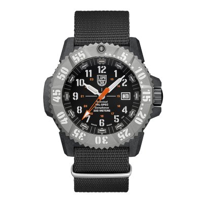 This Luminox watch has a case made of Carbon with a diameter of 46 mm and is fitted with a rubber strap. Inside the case lies a ETA movement and the watch features a Single anti-reflective sapphire crystal.