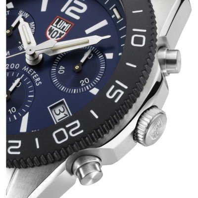 This Luminox watch has a case made of Steel silver with a diameter of 44 mm and is fitted with a Steel silver strap. Inside the case lies a Ronda movement and the watch features a Sapphire crystal.