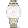 This Maurice Lacroix watch strap is made of stainless steel and is attached to the watch by means of quick release pushpins. The band has a width of 26 mm and is closed by means of a butterfly clasp with push buttons. The strap has no straight mount which means that this strap is only suitable for the watches listed below.