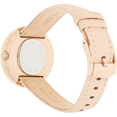 This Michael Kors watch has a case made of Steel silver with a diameter of 36 mm and is fitted with a leather strap. Inside the case lies a Miyota movement and the watch features a Mineral crystal.