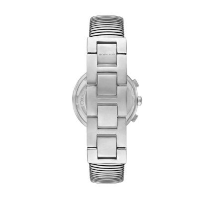 This Michael Kors watch has a case made of Steel silver with a diameter of 36 mm and is fitted with a Steel silver strap. Inside the case lies a Miyota movement and the watch features a Mineral crystal.
