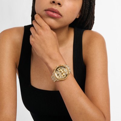 This Michael Kors watch has a case made of Steel silver with a diameter of 42 mm and is fitted with a Steel silver strap. Inside the case lies a Miyota movement and the watch features a Mineral crystal.