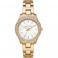 This Michael Kors watch has a case made of Steel silver with a diameter of 36 mm and is fitted with a Metal strap. Inside the case lies a Seiko Instruments Inc. movement and the watch features a Mineral crystal.