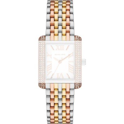 This Michael Kors watch strap is made of stainless steel and is attached to the watch by means of push pins. The band has a width of 18 mm and is closed by means of a deployment clasp with push buttons. The strap has no straight mount which means that this strap is only suitable for the watches listed below.