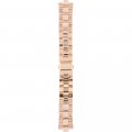 This Michael Kors watch strap is made of stainless steel and is attached to the watch by means of steel pins. The band has a width of 18 mm and is closed by means of a deployment clasp with push buttons. The strap has no straight mount which means that this strap is only suitable for the watches listed below.