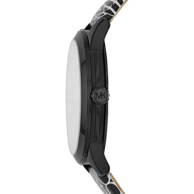 This Michael Kors watch has a case made of Steel silver with a diameter of 38 mm and is fitted with a leather strap. Inside the case lies a Seiko Instruments Inc. movement and the watch features a Mineral crystal.