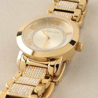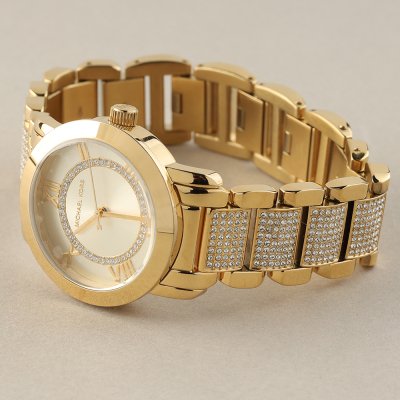 This Michael Kors watch has a case made of Steel silver with a diameter of 33 mm and is fitted with a Metal strap. Inside the case lies a Miyota movement and the watch features a Mineral crystal.