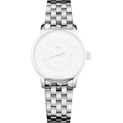This MIDO watch strap is made of stainless steel and is attached to the watch by means of push pins. The band has a width of 15 mm and is closed by means of a deployment clasp with safety. The strap has no straight mount which means that this strap is only suitable for the watches listed below.